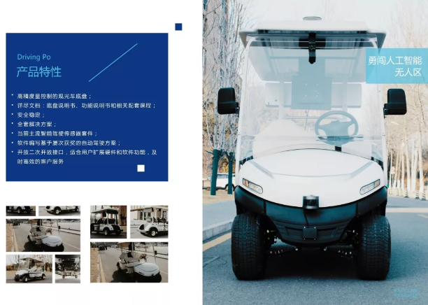 采用當前主流智能駕駛傳感器套件、軟件編寫基于屢次獲獎的自動駕駛方案、高精度量控制的觀光接待車底盤、開放二次開放接口,適合用戶拓展和軟件功能,可以及時高效的實現溝通,性能安全穩定。